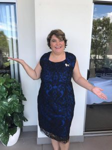 Happy woman in blue dress
