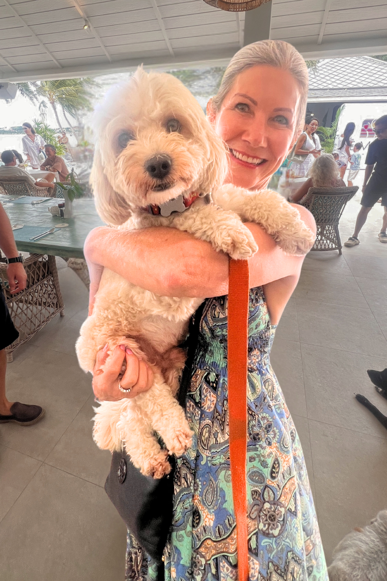 Moana was pictured with the adorable dog Ralph in her arms, perfectly capturing the relaxed island atmosphere and the essence of connection, fashion, and fun in Samui, Thailand.